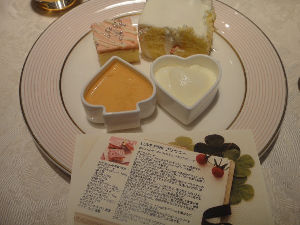 We served our guests with my pink brownies (top left one) along with recipe cards!!! My wedding coordinator was kind enough to ask her friend (patissier) to create them for our wedding. Remember it or not, what we printed out at Kinko's were recipe cards ;)