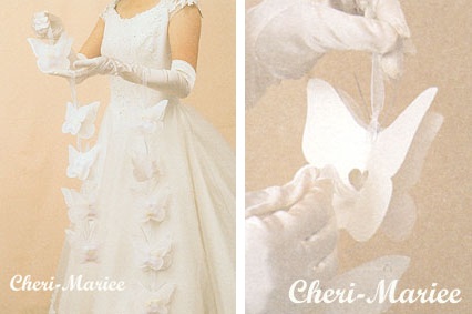 Last but not least, we also prepared a petit gift. It's a butterfly with 5 Jordan almonds. Five Jordan almonds symbolize five wishes for the bride and groom: health, happiness, fertility, financial stability, and longevity ;) I hung them on my arm and gave one by one to the guests when we saw them off! Why not heart?! Because we wanted to close with a butterfly since our invitation card was a butterfly, too!