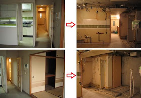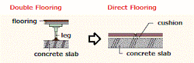 As I wrote before, we have to lift 10cm to apply the wooden plyboard floor (double flooring) which might make our room feel cramped and small. To save the height of the ceiling, our option is to apply cushion flooring (direct flooring), which can keep LL45 (sound insulation level). However, the cushion can sink if you walk or put heavy stuff on it. Thus, it can have gap between the floor after years.