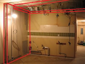 The kitchen used to be along the back wall, so to have a counter kitchen, we need to extend the water pipes from the side wall.