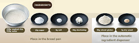 It's simple to use. In the bread pan, place 220g of washed rice, 210g of water, 4g of salt, 16g of sugar, and 10g of shortening. In the automatic ingredient dispenser on the upper side of the body, place 50g of wheat gluten and 3g of dry yeast.