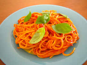 Today, he picked some leaves, so I cooked pasta pomodoro with basil for lunch!