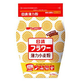 Cake Flour, we call 薄力粉 (Hakurikiko), is soft (weak) wheat flour of low viscosity and protein content. It has a fine texture and gives cakes more tender texture than regular flour.