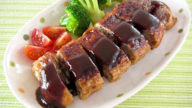 6. Cut into bite-size pieces, pour (B) mixture over them. Serve with vegetables of your choice.
