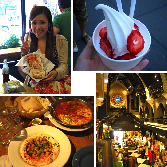 Day 5 (7/5):Can you believe it's already the 5th day?! Yeah, I was kind of feeling in that way at this time :'( We took a breakfast at hotel's Market. They are open 24 hours, which is very convenient! For a snack, we went to my long-planned Luke's Lobster! A Taste of Maine, you can try half of lobster, crab, and shrimp! I shared it with my darling but I thought I could eat them all by myself later. hehehe Then we walked up to Union Square to shop (we tried YOGO frozen yogurt - sold on trucks) and went to Limelight Marketplace (originally a church). I never get tired of shopping! For dinner, we went to Hummus Place and tried their recommended dishes: Hummus Masabacha and Shakshuka. No meats?! Yeah, they serve vegetarian dishes. The foods were delicious but we kind of needed meats. haha