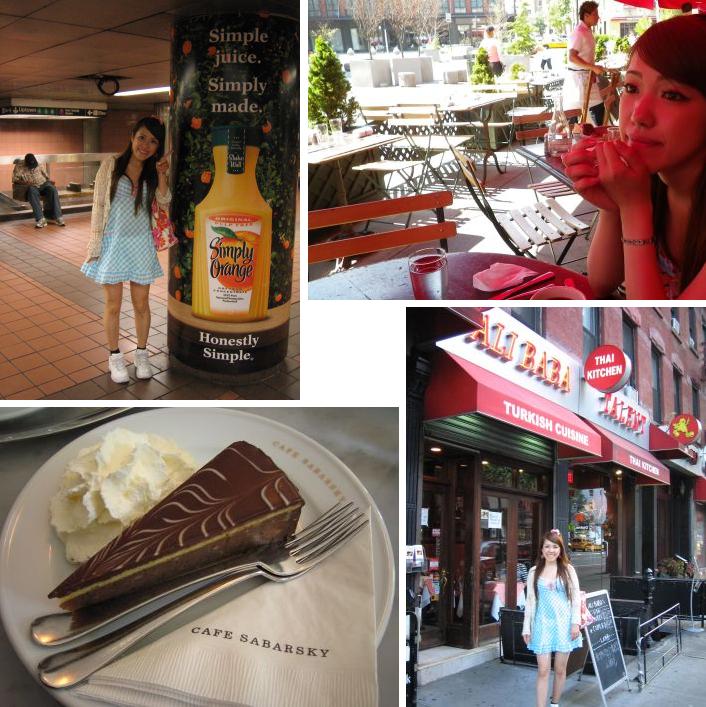 The last day was hot, too. Believe it or not, it was high 101F. Forgot about the last night dinner, we went to Chelsea to have brunch at Pastis. Their Grilled Chicken Paillard (salad) was great!!! Try it out if you get a chance to go there. After shopping at Chelsea Market, we shopped at Macy's and 5th avenue again. Then we went up to East 86th to have a coffee at Cafe Sabarsky. Their Sabarskytorte (Chocolate and Rum Cake) was delicious. We could have brunch there the next year since they also serve nice brunch menus!!! Anyway, it was too hot to walk in the park, so we took a subway to go back to midtown. For dinner, we had Turkish food at Ali Baba. Unexpectedly, their recommended dishes (Findik Lahmacun: 3 Pieces - appetizer version of famous lahmacun and Mixed Grill - an assortment of adana kebab, shish kebab, doner kebab and lamb chop) were super delicious. We should try out more of foreign foods the next year!!! Walking 10 blocks back to the hotel was not a pain at all... we missed walking in the city since it was the last night.