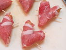 2. Cut the rolls diagonally, join the cut sides reversely, and join them with toothpicks to look like hearts.