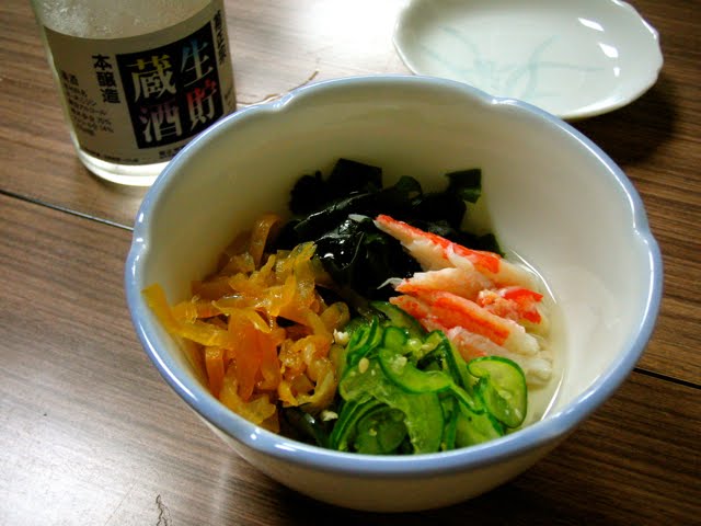 We first enjoyed their appetizer (sunomono) and cold sake, since it takes 30 minutes to cook unagi. LoL